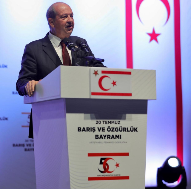 Cumhurbaşkanı Ersin Tatar, resepsiyonda yaptığı konuşmada, 50 yıl önce 20 Temmuz tarihinde Kıbrıs Türk halkının etnik temizlik ve soykırımdan geçmesinin arifesinde, Türkiye’nin garantörlük hakkını kullanarak Harekat gerçekleştirdiğini kaydederek, “Mücahitlerimiz bir destan yazdı. Bu destan sayesinde bugün Kıbrıs’ta barış, huzur ve güvenlik var.” dedi.