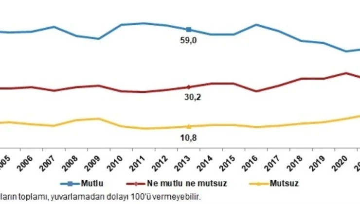 TÜİK “Yaşam Memnuniyet Araştırması, 2023” araştırmasının sonuçlarını açıkladı. Yaşam memnuniyeti araştırması sonuçlarına göre, mutlu olduğunu beyan eden 18 ve üzeri yaştaki bireylerin oranı, 2022 yılında yüzde 49,7 iken 2023 yılında 3,0 puan artarak yüzde 52,7 oldu. Mutsuz olduğunu beyan eden bireylerin oranı ise 2022 yılında yüzde 15,9 iken 2023 yılında 2,2 puan azalarak yüzde 13,7 olarak gerçekleşti. Mutlu olduğunu belirten evli bireylerin oranı, 2023 yılında yüzde 56,4 iken evli olmayanlarda bu oran, yüzde 45,8 olarak belirlendi. Evli olanların mutluluk düzeyi cinsiyete göre incelendiğinde; evli erkeklerin yüzde 53,2’sinin, evli kadınların ise yüzde 59,5’inin mutlu olduğu gözlendi.