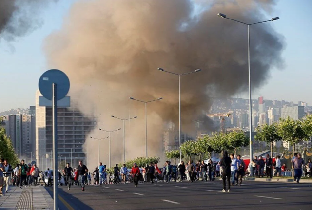 Saatler 22.00’yi gösterdiğinde ise Ankara’da savaş uçakları alçak uçuşa başladı. Darbecilerin hedefindeki en önemli yerlerin başında Milli İstihbarat Teşkilatı geliyordu. FETÖ’cü pilotlar helikopterlerle Ankara Yenimahalle’deki MİT yerleşkesini taramaya başladılar. İstanbul Atatürk Havalimanı da hareketliydi. Bir grup darbeci, tanklarla havalimanına gelerek Kontrol Kulesi’ni işgal etti. Uçuş trafiğini durdurdu. Saatler 23.00’ü gösterdiğinde bu kez hedef İstanbul Büyükşehir Belediye Başkanlığı binasıydı. İBB binasını basan darbeciler kendilerine direnen sivil halkın üzerine ateş açtı. 14 kişi darbecilerin silahından çıkan kurşunlarla şehit düştü.